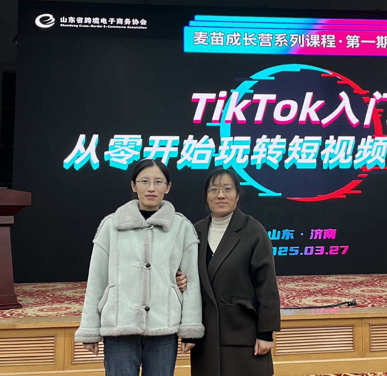 3月27日,山东省跨境电子商务协会主办的TikTok跨境电商运营培训在济南举行。培训会特邀出海研究院海外运营事业负责人、TikTok私域运营专家邱际嘉担任主讲,向学员们分享了TikTok平台的运营技巧与流量转化策略,内容涵盖TikTok平台的商业生态、外贸账号的定位与运营、底层算法解析以及如何快速建立爆款视频等核心要点。国际商学院选派彭修洁和杨姗姗两位老师参加培训会。