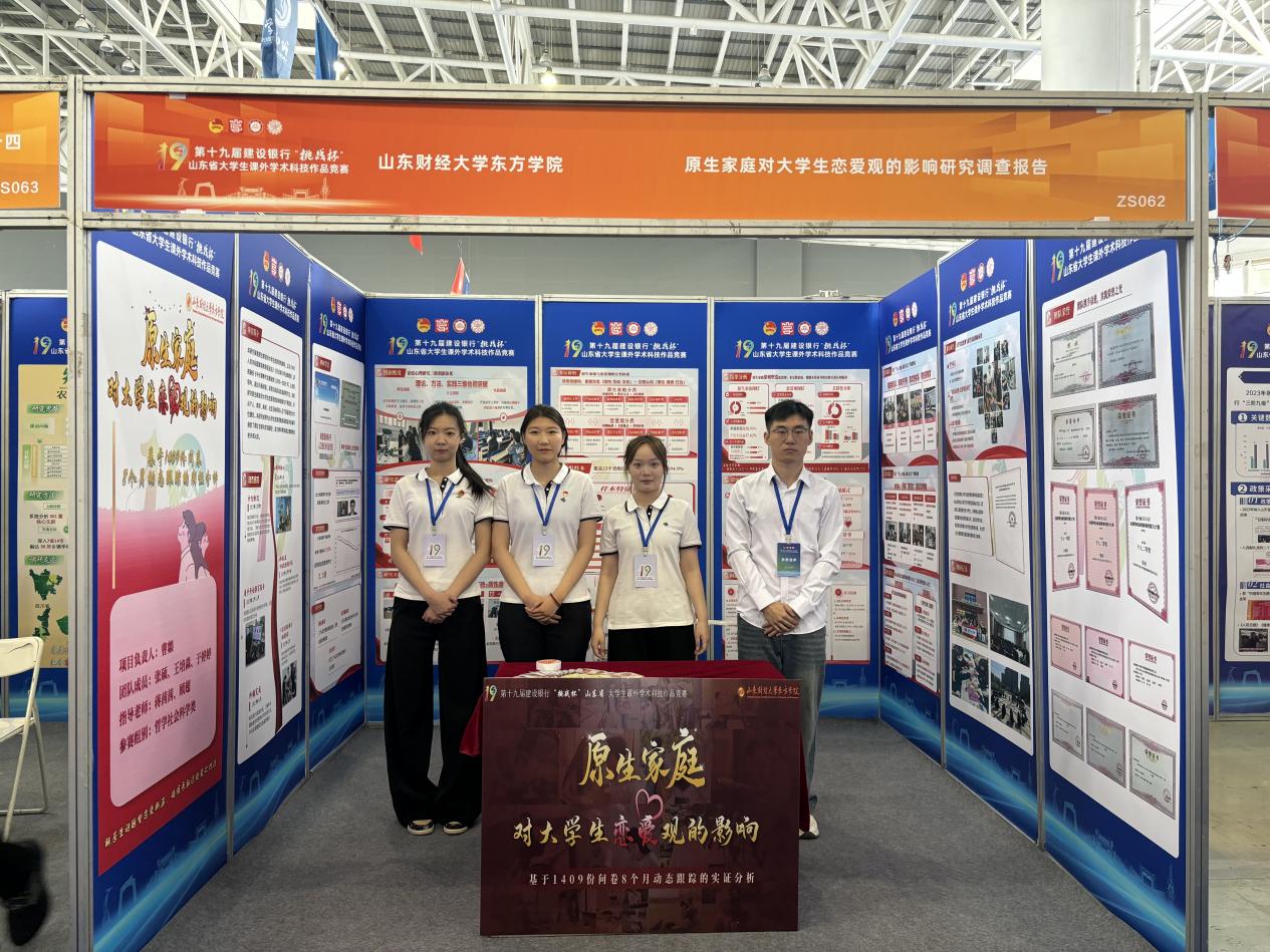 6月4日至6日,由共青团山东省委、山东省科学技术协会、山东省教育厅等主办的第十九届“挑战杯”山东省大学生课外学术科技作品竞赛决赛在临沂大学举行。本届“挑战杯”以“齐鲁青韵,领创未来”为主题,经过校级初赛、省级复赛和省级决赛,层层选拔,最终来自全省120所高校的462个项目入围省级终审决赛。国际商学院参赛项目“原生家庭对大学生恋爱观的影响研究调查报告”荣获省级决赛一等奖,实现了我校在此项赛事上的历史性突破。