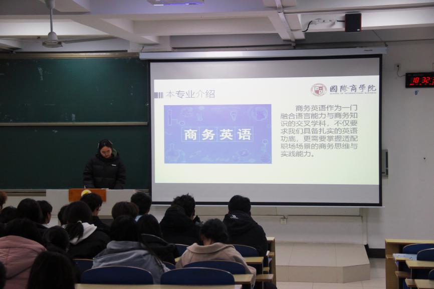 为增强学生学业规划能力,拓展学习与成长路径,11月19日晚,国际商学院在5206教室举办“学长学姐领航计划”首场学习经验交流会。活动邀请了来自24级商务英语班的张思琪和国际经济与贸易专升本班的曹燚两位同学担任分享嘉宾,24级和25级全体本科生参加了交流活动。